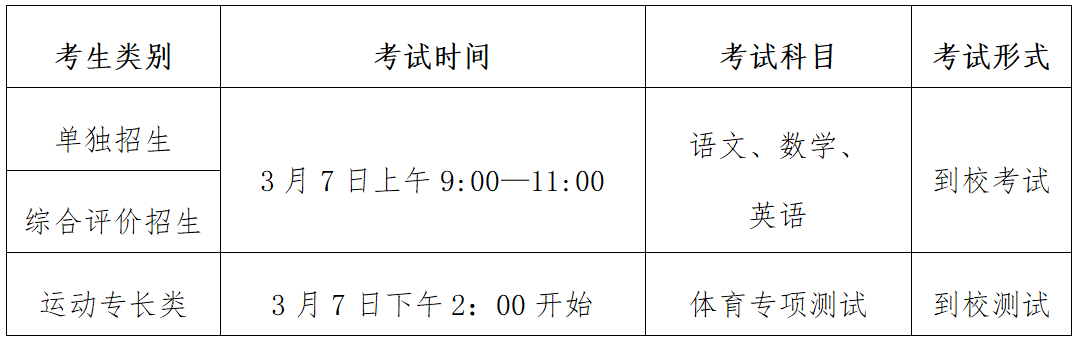 运动专长类考生在以上考试内容基础上,增加体育专项测试,由我院组织,重点考察考生的体育专项能力(具体测试方案请关注学院网站)。