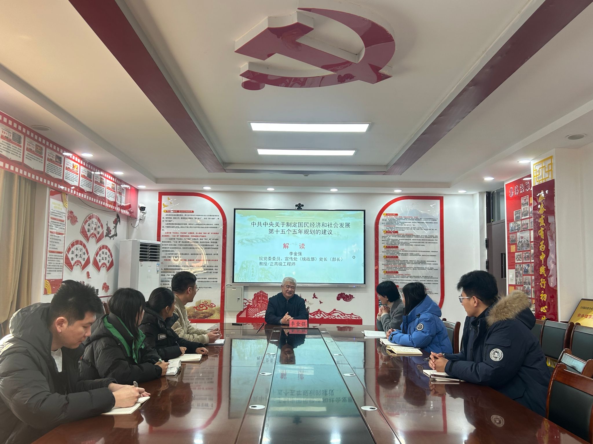 12月24日,学院党委委员、宣传处(统战部)处长(部长)李金强以“《中共中央关于制定国民经济和社会发展第十五个五年规划的建议》解读”为主题讲授专题党课。财经系学生党支部全体教师党员参加此次学习,共同深入领会“十五五”规划的核心要义与实践要求。