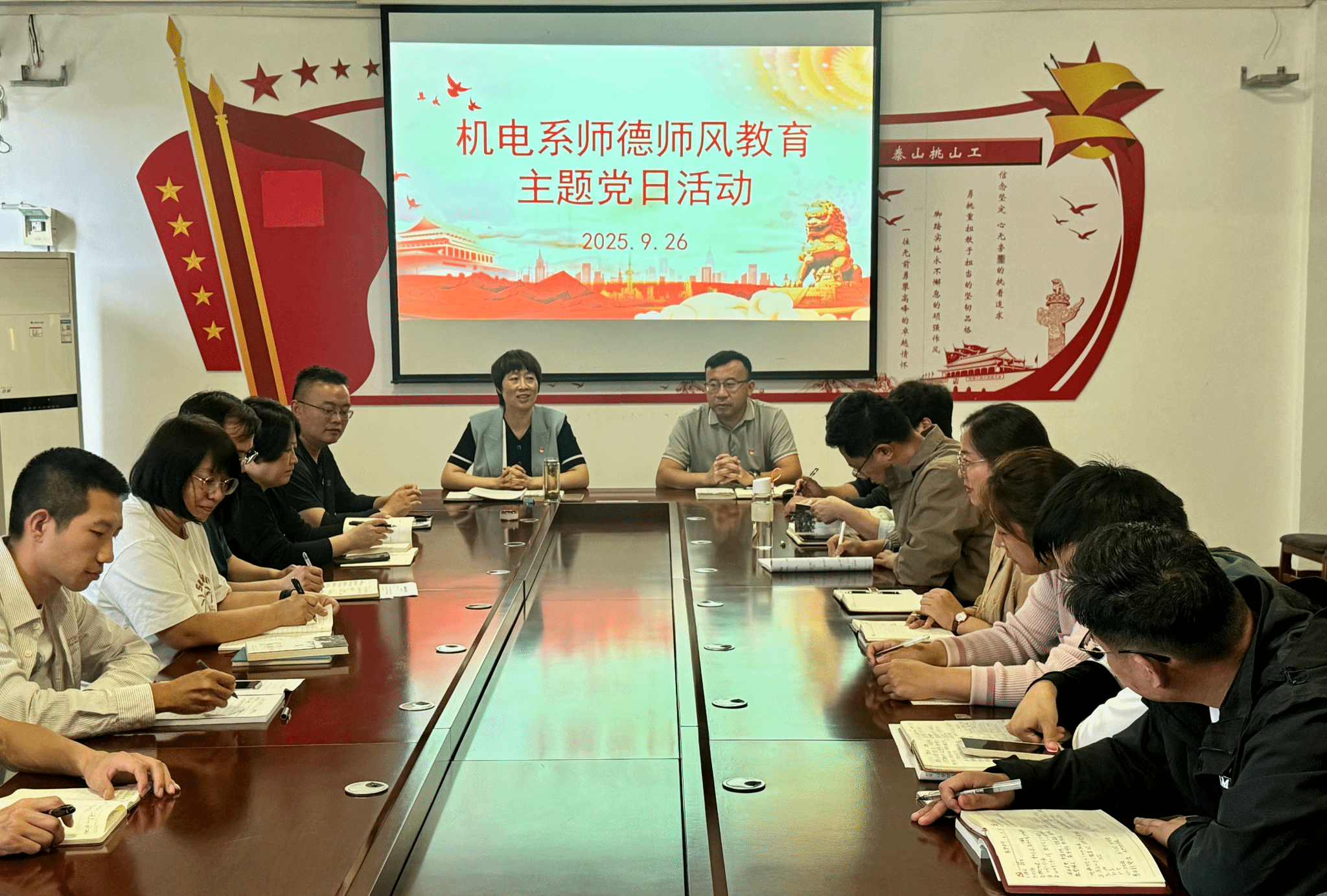 为强化教师思想政治与师德师风建设,增强立德树人使命感,9月26日下午,机电系在系会议室举办“弘扬高尚师德,潜心立德树人——学习季羡林先生风范”主题党日活动,系党总支书记杨中焕主持会议,主任巩振全、副主任胡晓亮及全体教职工参加会议。