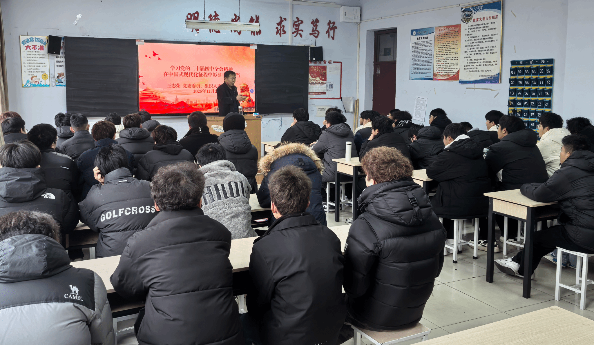 12月23日,学院党委委员、组织人事处处长王志荣走进机电系2025级数字化设计与制造技术1班,围绕党的二十届四中全会精神,为学生讲授了一堂主题鲜明、内容扎实的思政课。