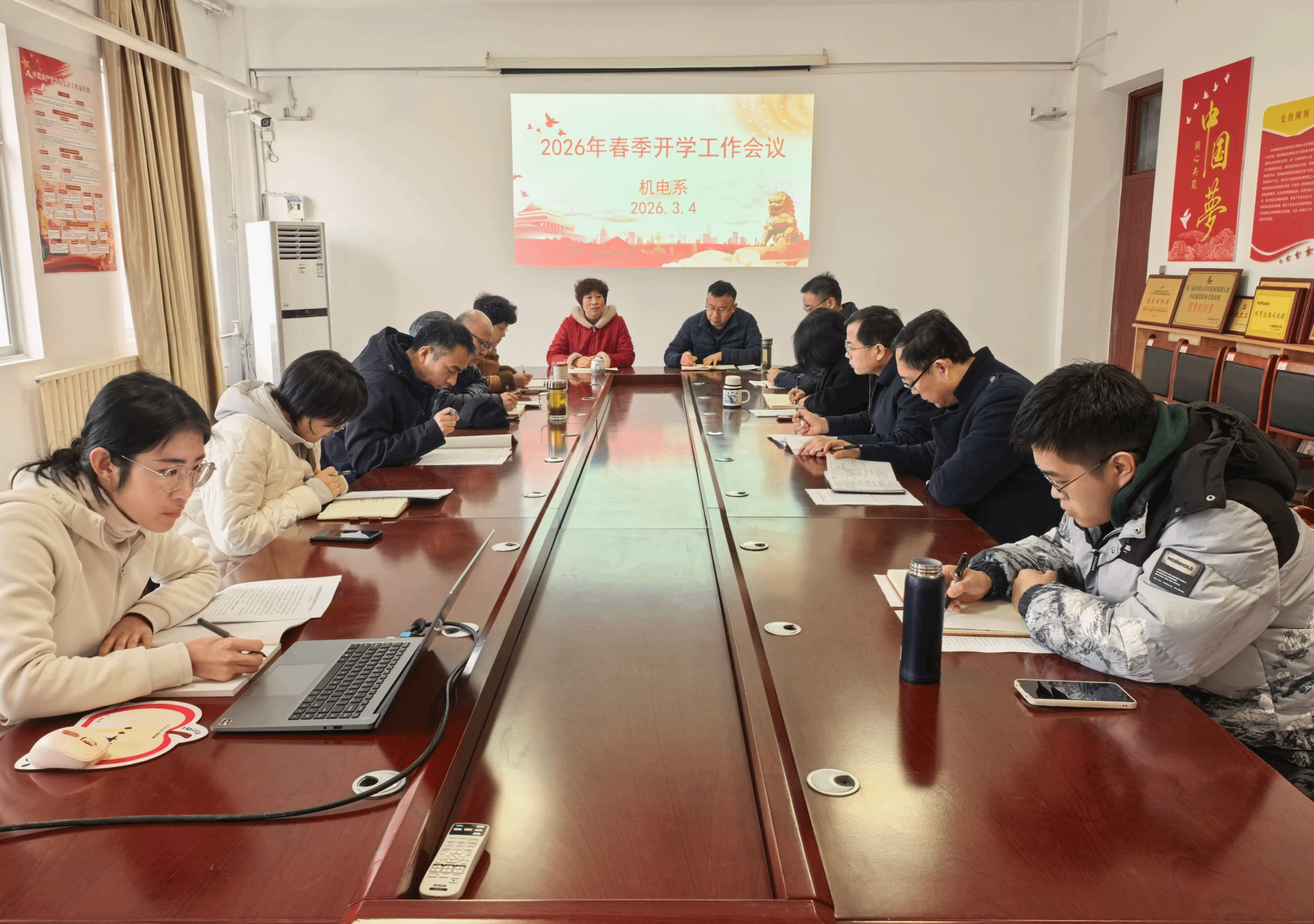 3月4日,机电系在系会议室召开2026年春季开学工作会议,系党总支书记杨中焕主持会议,系主任巩振全、副科级以上干部及各专业负责人参加会议。