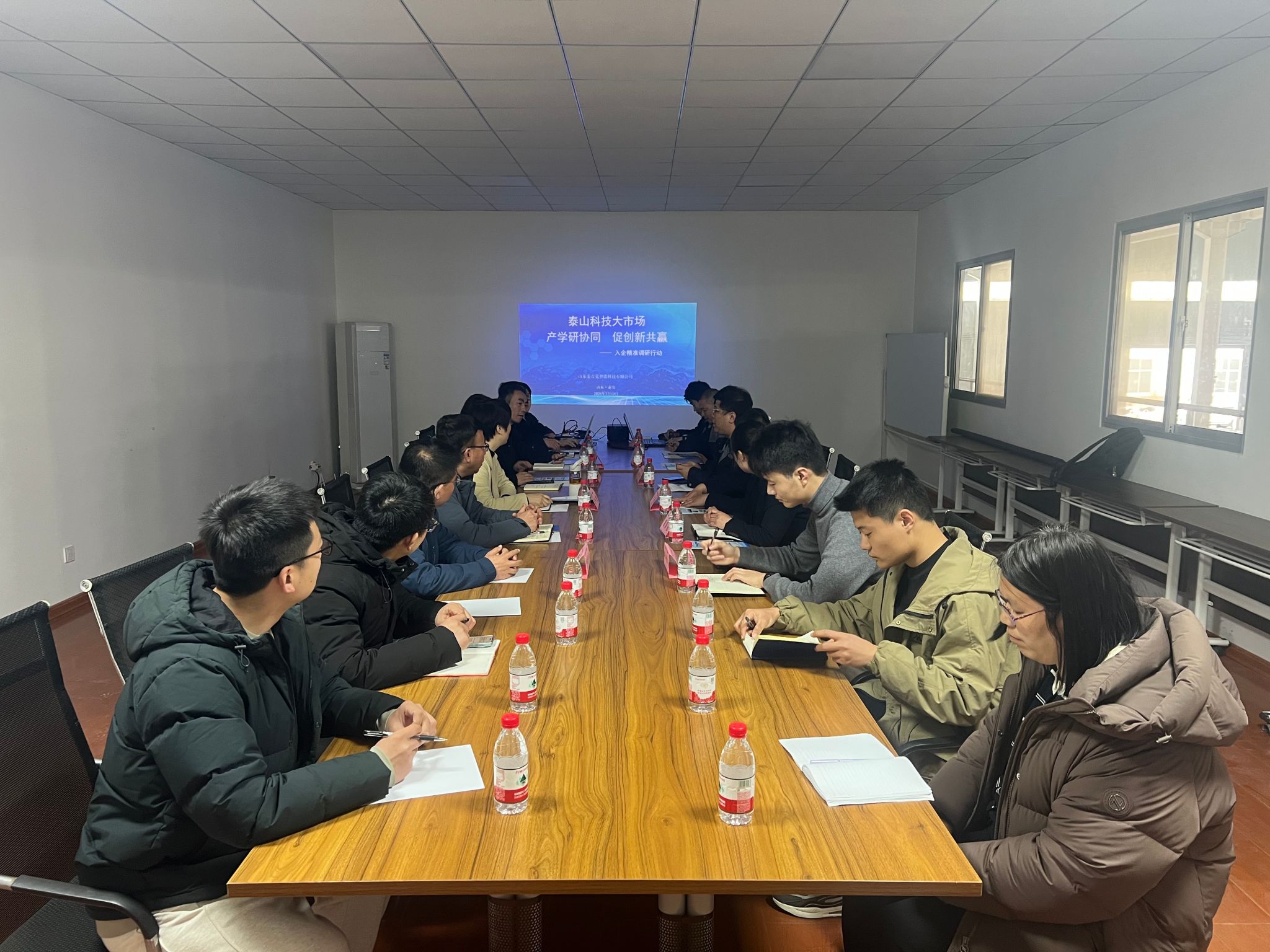 泰山科技大市场负责人葛新茹介绍了大市场发展历程、校企合作成果等情况。随后,一行人员在其带领下,参观了山东麦吉克智能科技有限公司生产现场,了解企业生产运营及发展规划。座谈会围绕“产学研协同,促创新共赢,入企精准调研行动”为主题进行,企业负责人介绍了企业发展概况及人才需求,调研团队与企业负责人就岗位技能需求等方面展开热烈交流。
