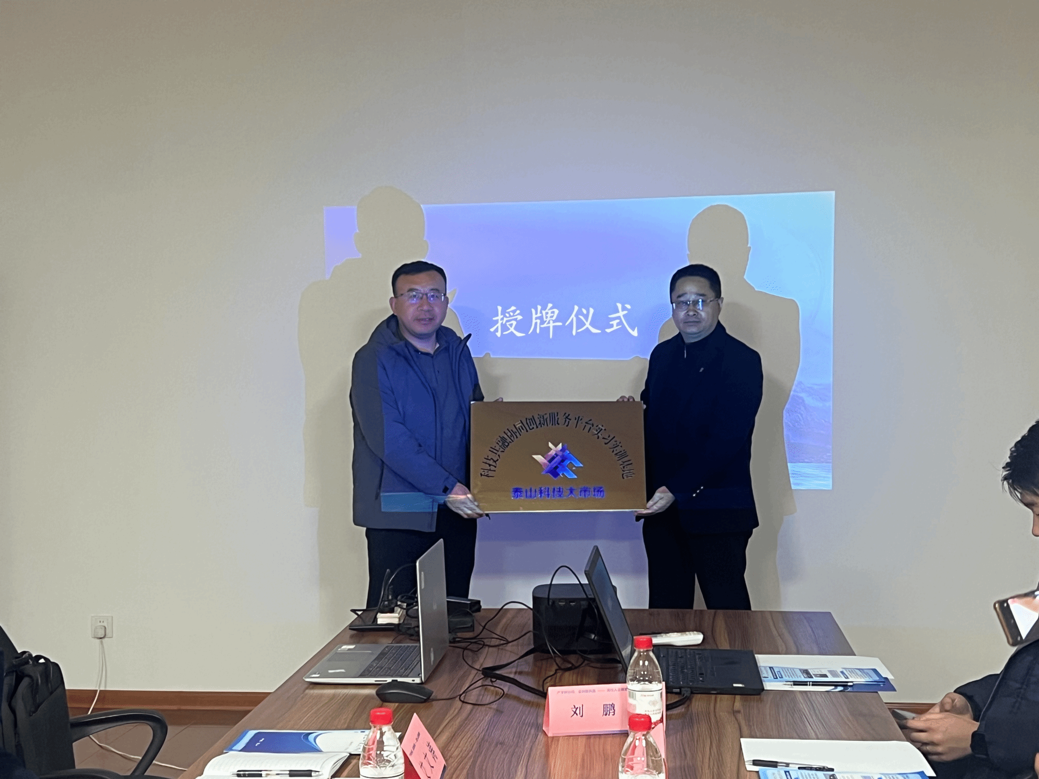 座谈会尾声,举行了“科技共融协同创新服务平台实习实训基地”和“泰山科技大市场成果转移转化示范基地”的授牌仪式,标志着校企合作进入新阶段。
