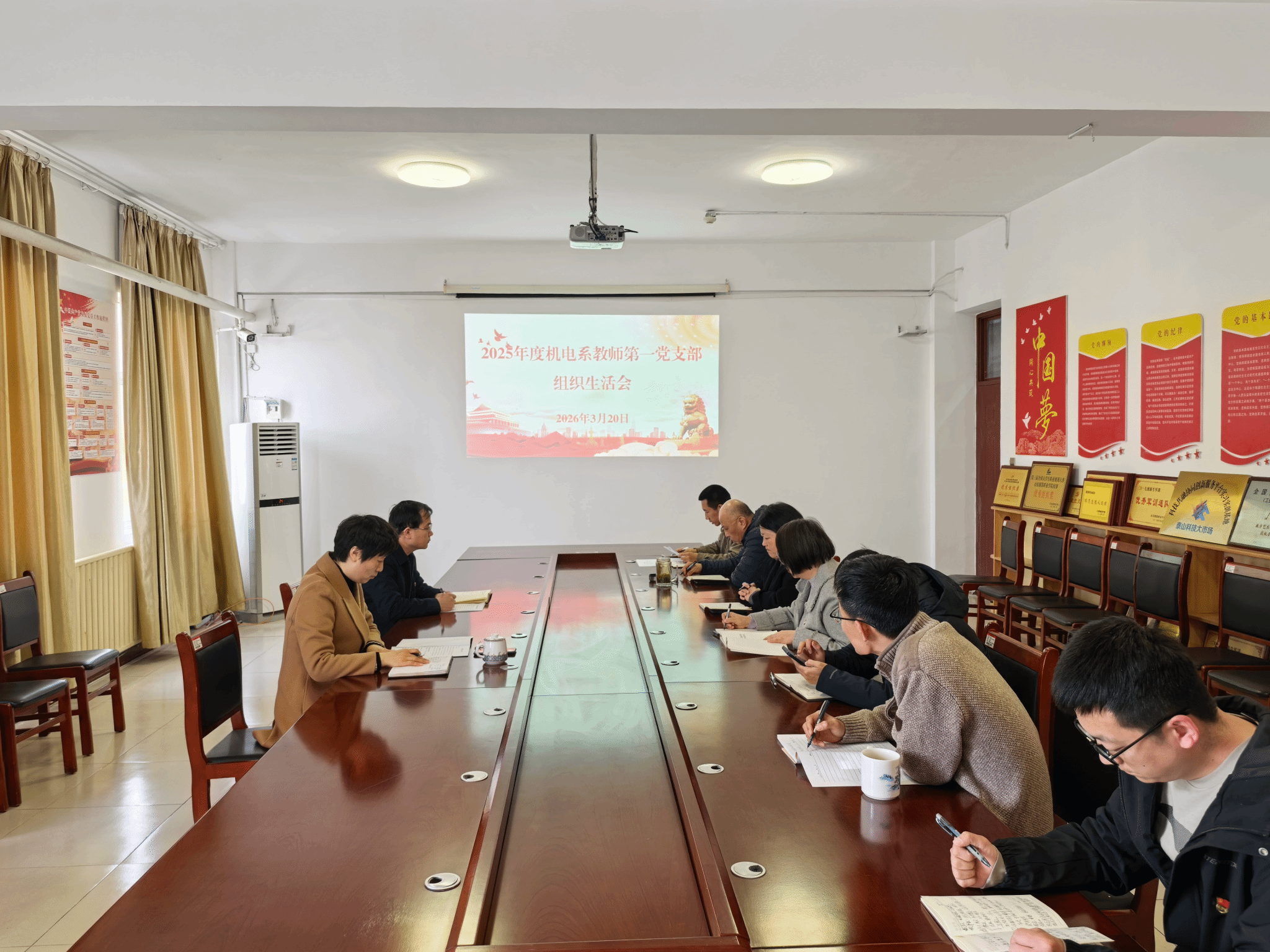 为深入学习贯彻习近平新时代中国特色社会主义思想,进一步加强党支部标准化规范化建设,机电系教师第一党支部于3月20日召开组织生活会,机电系党总支书记杨中焕及党支部全体党员参加会议。