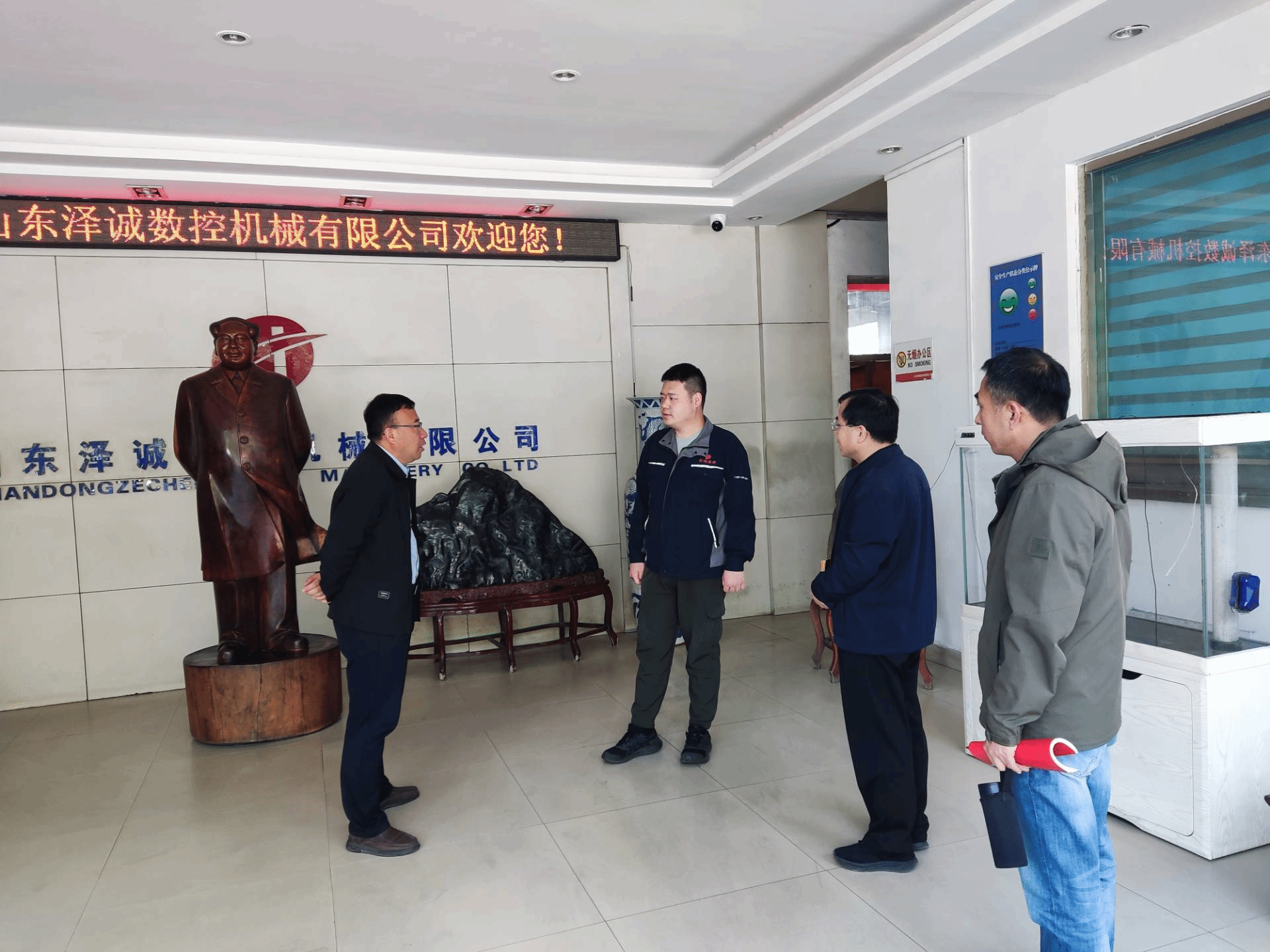 考察团队先后参观了生产车间、技术研发中心、员工生活区等核心区域,全面了解企业生产工艺流程、技术研发实力、运营管理模式及员工工作环境。随后的座谈交流会上,双方围绕数控机械行业发展趋势、企业人才需求标准、校企合作方向等议题深入探讨。