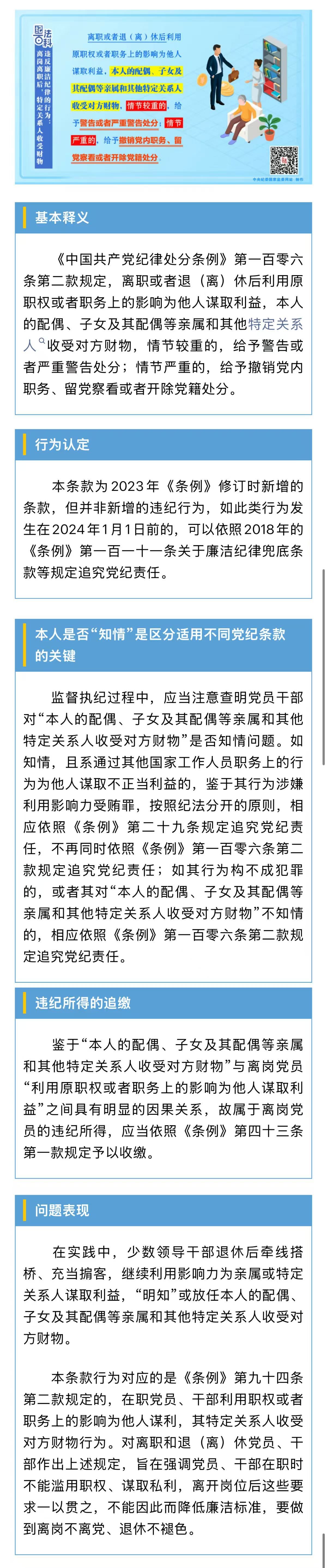 纪法课堂 | 违反廉洁纪律的行为:离岗离职后,特定关系人收受财物