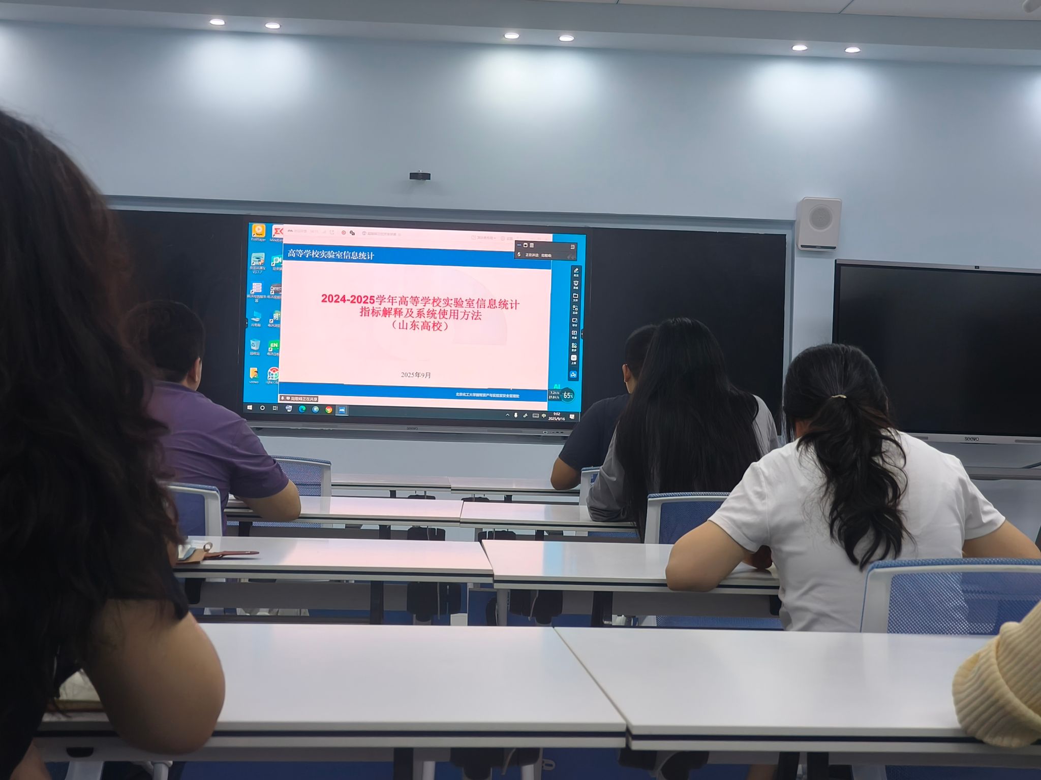 本次培训由山东省教育厅主办,全省高校通过“云端直播+实时互动”模式同步参与。专家重点解读了《山东省高等学校实验室信息统计管理办法(2025修订版)》,技术团队演示了新版“山东省高校实验室信息管理系统”操作方法。