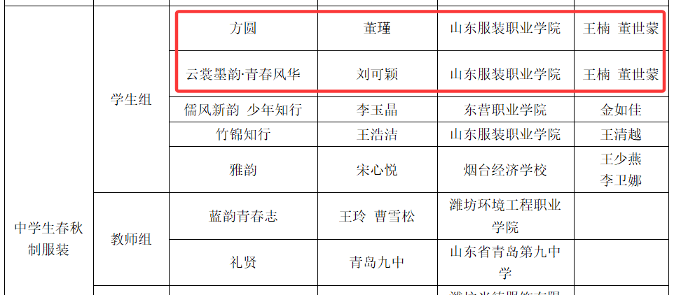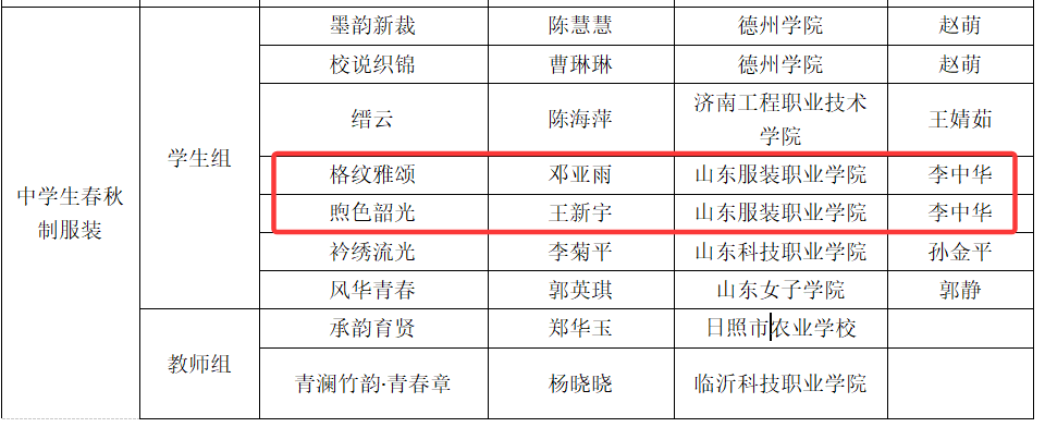 近日,由山东省教育厅、山东省工业和信息化厅、山东省市场监督管理局联合主办的山东省第七届校服设计大赛落下帷幕,山东服装职业学院荣获优秀组织奖。学院服装设计与表演系师生凭借扎实的专业功底和创新设计理念,经过初评、成衣报送、终评三个阶段的比拼,从全省参赛队伍中脱颖而出,教师组获一等奖1项、二等奖2项,学生组获一等奖1项、二等奖4项、三等奖3项、优秀奖14项,指导专业组获一等奖1项,充分展现了学院在服装专业人才培养与实践教学领域的突出成果。