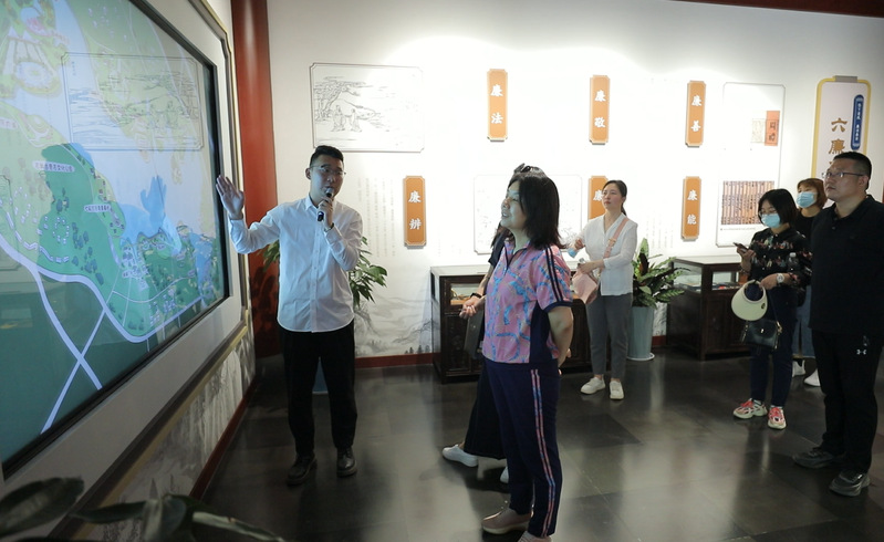 在官箴园广场,支部党员在官箴刻石碑前学习三十六字官箴箴言,行走在廉洁文化广场的大道上,雕塑竹简、德政碑刻、家国之窗等廉政文化展示点一一映入眼帘,廉政文化和园林景观相映成趣。大家不时驻足欣赏,热烈讨论。