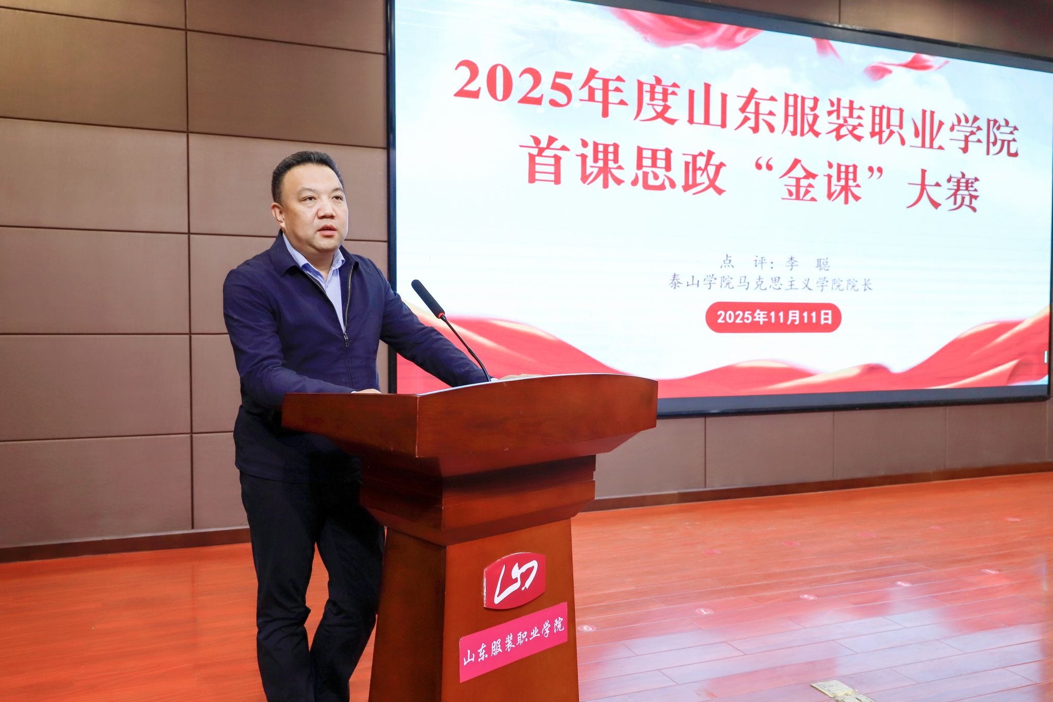 此次大赛特邀校内外相关领域具有丰富教研经验的教授担任评委,确保比赛的专业性与公正性。赛事结束后,泰山学院马克思主义学院院长李聪和山东服装职业学院思政部主任吴士锋对比赛进行了点评。