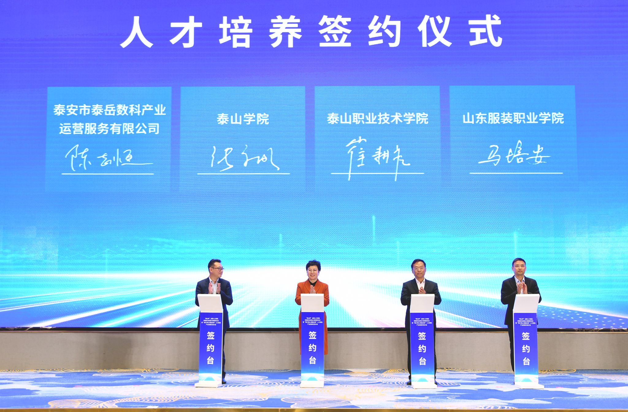 此次参会签约,是学院贯彻落实国家产教融合、校企协同育人政策的重要举措,是学院主动服务泰安“数字强市”建设、助力人工智能产业高质量发展的具体实践。学院将以此次合作为契机,充分发挥教育教学与人才培养优势,与泰安市泰岳数科产业运营服务有限公司、百度智能云(泰山)产业基地紧密协作,持续完善“校企协同、工学结合”的人才培养模式,为区域人工智能产业输送更多“懂技术、能实践、善创新”的高素质人才,为推动地方经济社会转型升级贡献高校力量。
