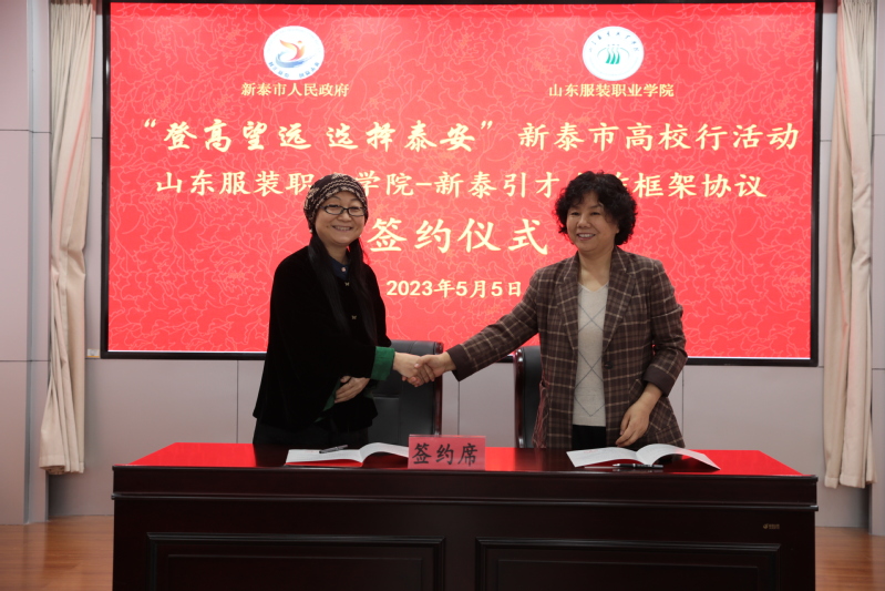 5月5日,“登高望远 选择泰安”新泰市高校行活动山东服装职业学院专场顺利举办。新泰市委常委、副市长许立根,市人力资源和社会保障局党组书记、局长李绪涛率队到山东服装职业学院招才引才。山东服装职业学院党委书记郝燕,党委副书记、院长马培安,副院长刘光珍出席活动。