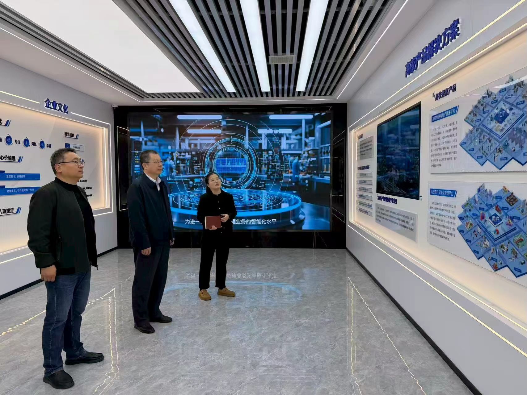 杨继鹏一行参观了山东国子软件股份有限公司的工作环境及展厅,了解企业概况,包括发展历程、业务范围、企业文化等。