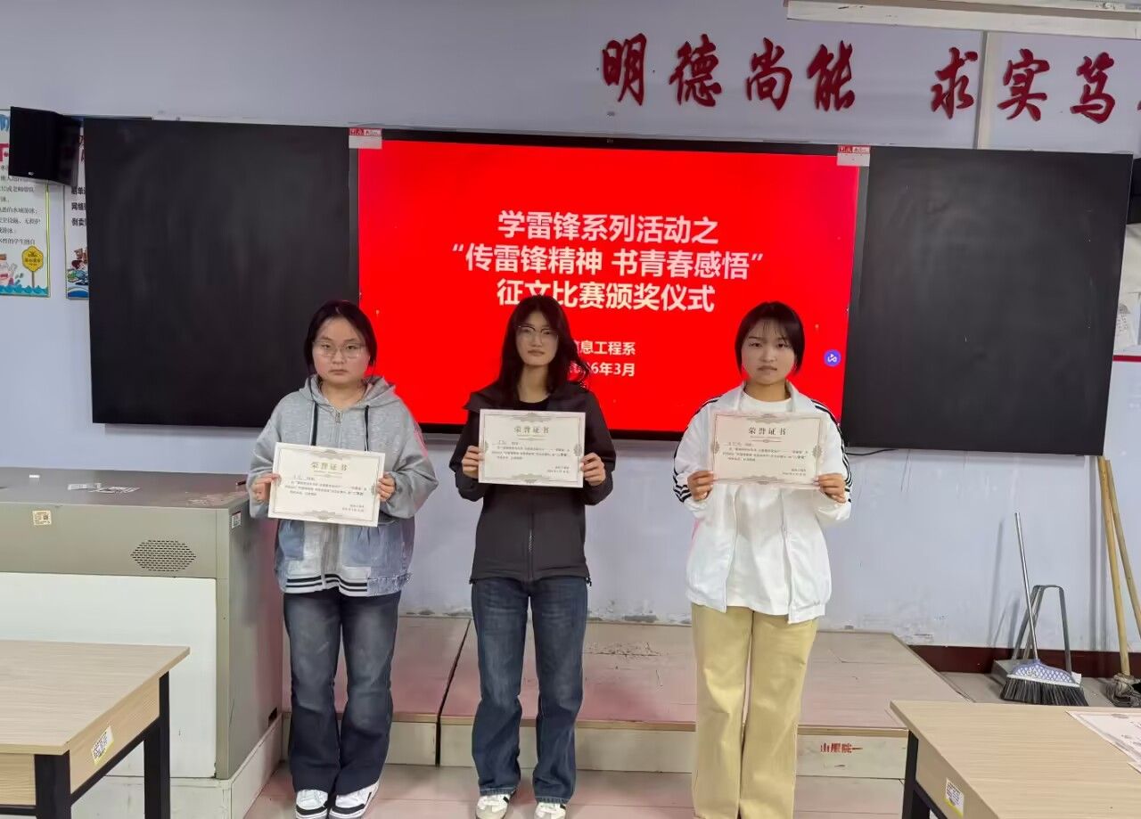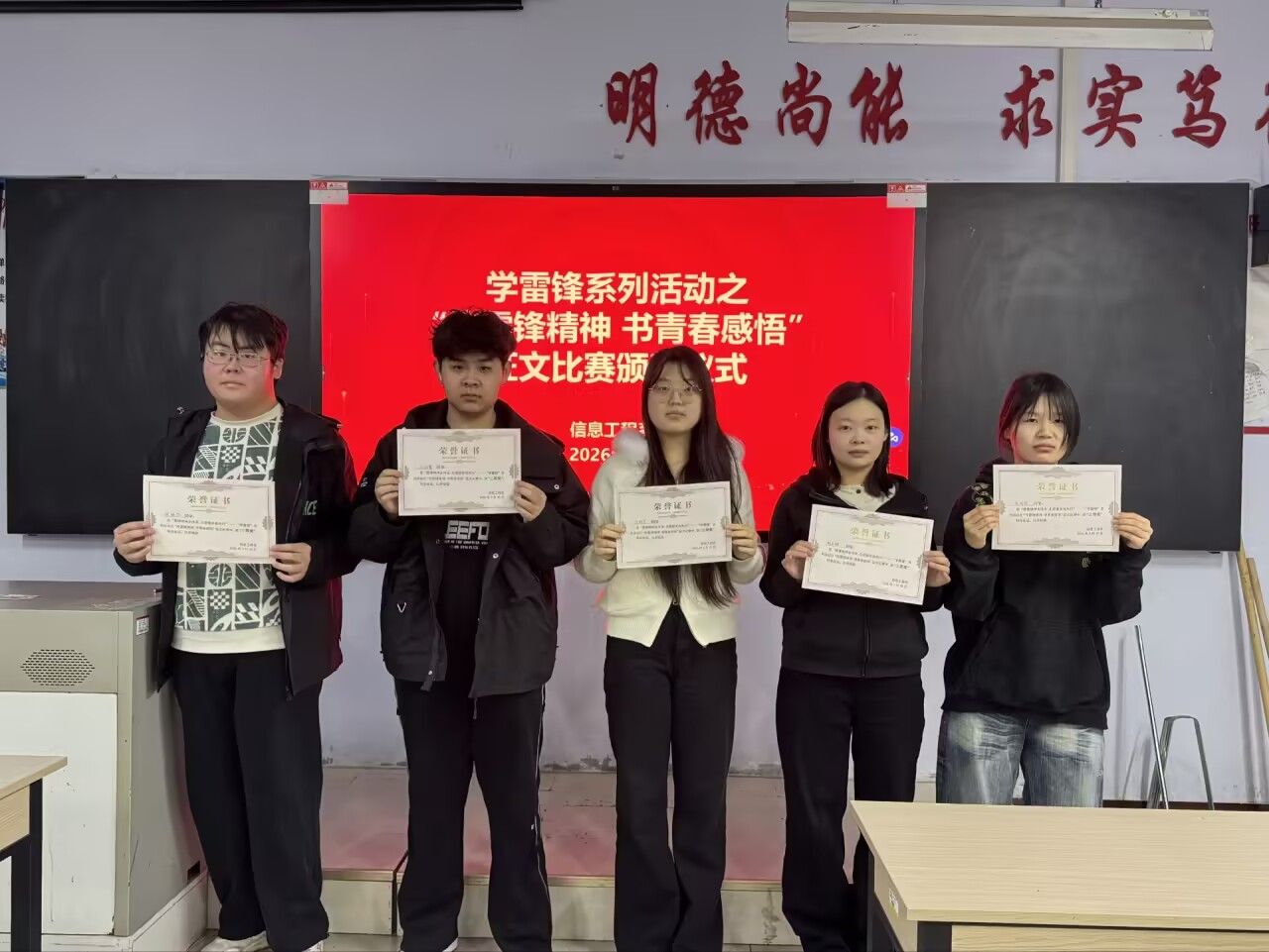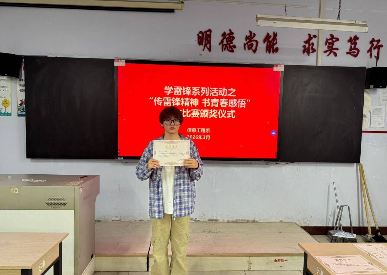 为深入传承与弘扬新时代雷锋精神,筑牢青年学生的思想道德根基,激发奉献、友爱、互助、进步的志愿服务热情,信息工程系于3月23日至29日,成功举办了“传雷锋精神 书青春感悟”主题征文比赛。