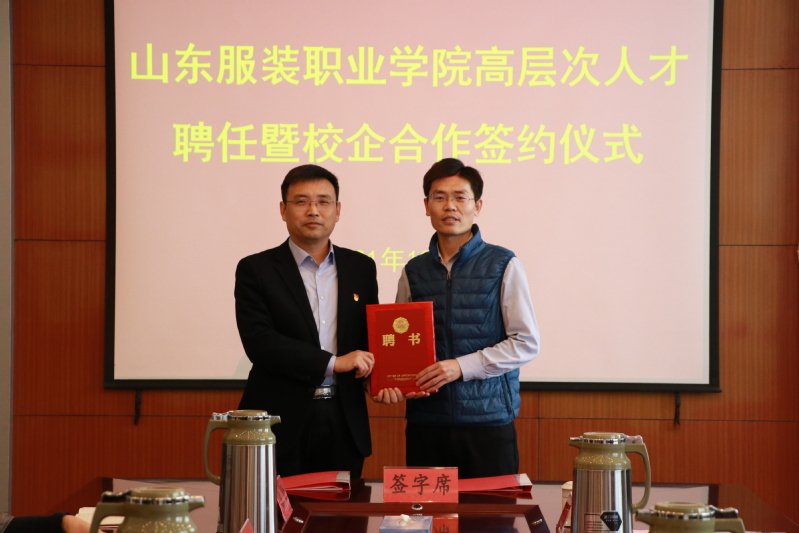 马培安为客座教授颁发聘任证书。他指出,山东云聚科技有限公司作为“高新尖”人才汇集的高新技术企业,发展动力强劲,成果丰硕,前景广阔。聘任企业高层次人才为客座教授,在专业共建、科研协作、就业创业、生产性实训基地建设等方面达成共识,标志着我院产教融合、校企合作再上新台阶。希望校企双方能够按照“立足当下、融合发展,长远规划、高质量发展”的思路与原则,密切合作,深入交流,打造大学生实习实训示范基地、产学研用联合培养基地和创新创业共同体的典型,为区域科技产业发展培养输送更多的高素质技能型人才。