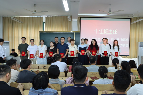 胡晓亮、景凯分别宣读表扬通报,表扬赵海涛等10位“十佳教学名师”、孙红玲等10位“十佳班主任”、罗文严等3位“优秀党务工作者”、王艳等3位“管理服务明星”、魏强等3位“优秀辅导员”、吕铭潇等3位“实训室管理明星”、陈文阳等8位“教坛新秀”、陈燕丽等3位“优秀宣传员”、鞠俊航等10位“十佳学生干部”,并依次进行颁奖。