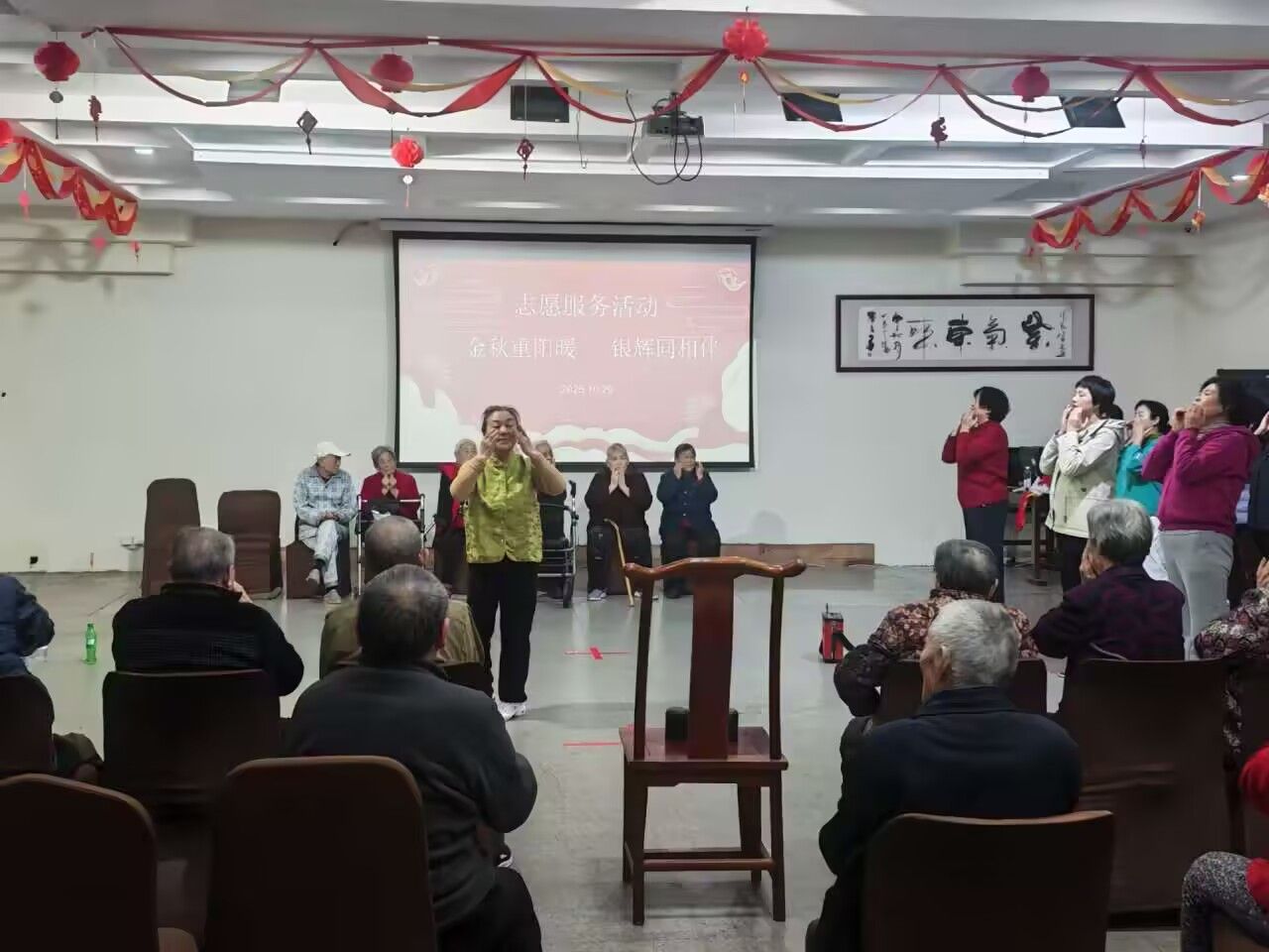 下午3时,志愿服务队辗转至德赡养老服务中心,与老人们共同参与“金秋重阳暖,银辉同相伴”互动活动。活动现场,老人们率先带来精心编排的手指舞与手指操表演,灵动的动作、饱满的精神状态赢得同学们阵阵掌声。在随后的趣味积分游戏环节,同学们主动上前协助行动不便的老人,帮他们传递道具、讲解规则,陪着老人一起答题、闯关,每当老人赢得积分,同学们比自己获奖还要开心。游戏结束后,大家围坐在老人身边,认真倾听他们讲述过去的故事,从生活趣事到人生感悟,温情的交流让养老服务中心充满家的温馨。活动最后,全体志愿者与老人们共同合影,镜头定格下青春与银发同框的美好瞬间。