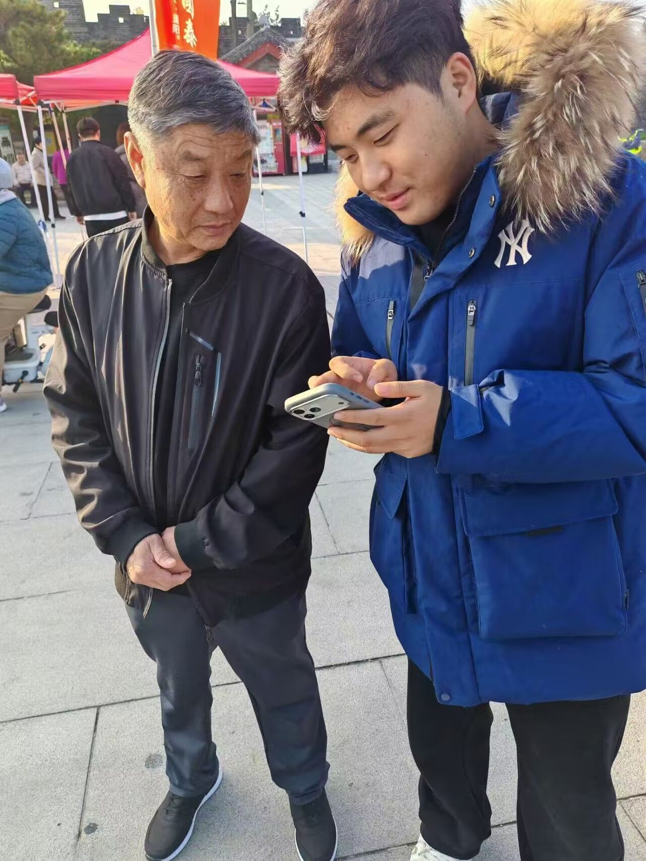上午9时,岱北广场上暖意渐浓。志愿服务队的同学们围绕老年人日常生活高频需求,手把手教老人们操作智能手机。从最基础的调整字体大小、连接无线网络,到实用的线上挂号、视频通话、防诈骗识别,同学们耐心拆解每一个操作步骤,用通俗的语言替代专业术语,遇到记忆较慢的老人,更是反复示范直至对方熟练掌握。“以前总怕点错按钮,现在跟着小老师学,终于学会跟外地的孙子视频了!”一位阿姨举着手机向同伴展示,脸上满是喜悦,广场上不时响起阵阵欢声笑语。