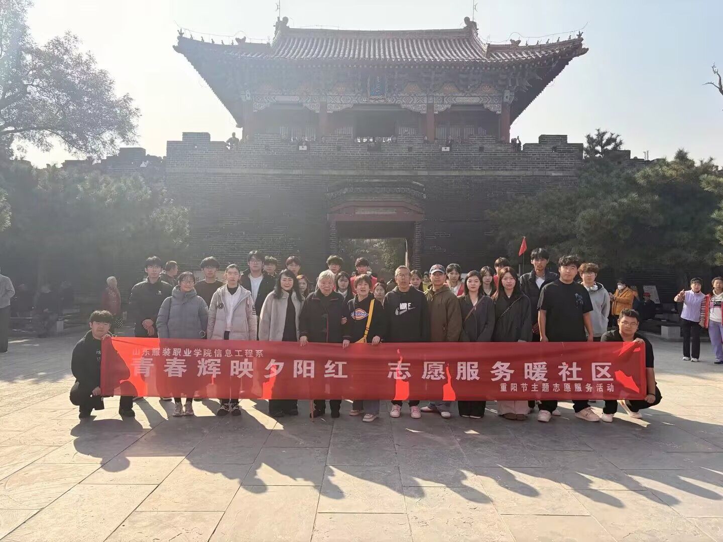 岁岁重阳,今又重阳。为传承中华民族“尊老、敬老、爱老、助老”的传统美德,10月29日,山东服装职业学院信息工程系团总支带领志愿服务队,开展“青春辉映夕阳红,志愿服务暖社区”重阳节敬老活动,用青春行动为老年群体送去秋日温暖。