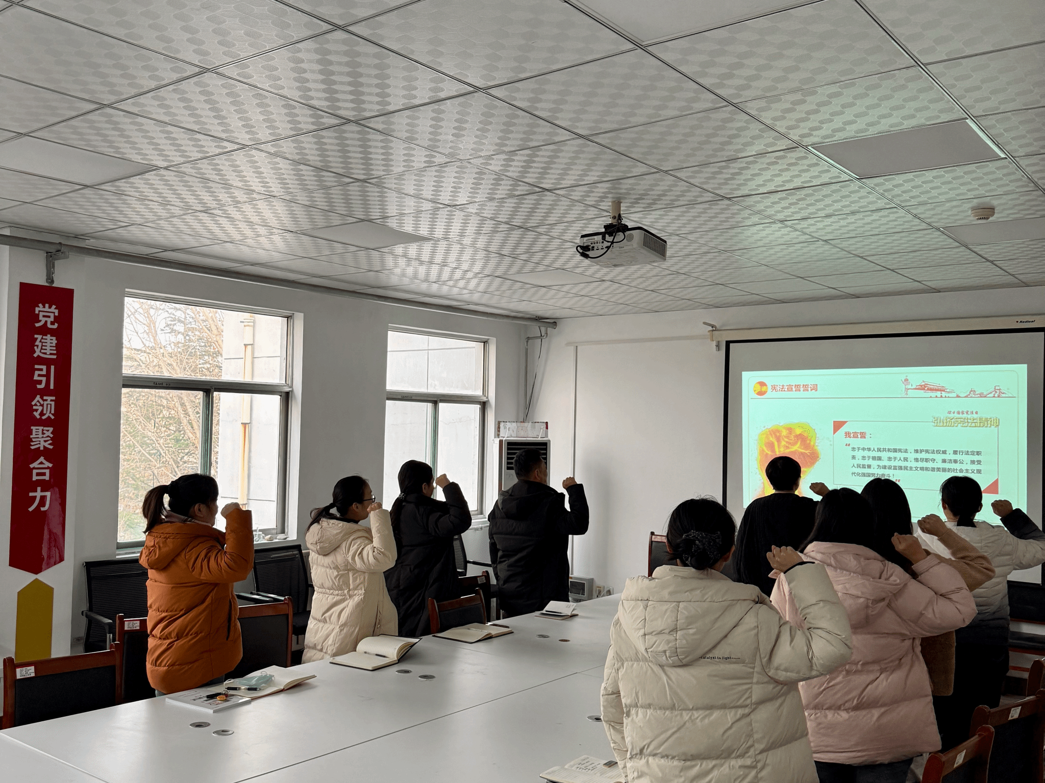 随后,全体党员教师庄严宣誓,表达了党员教师们对宪法的尊崇和对尊法守法的坚定承诺。党员们纷纷表示,将牢记使命,把宪法精神融入工作生活。