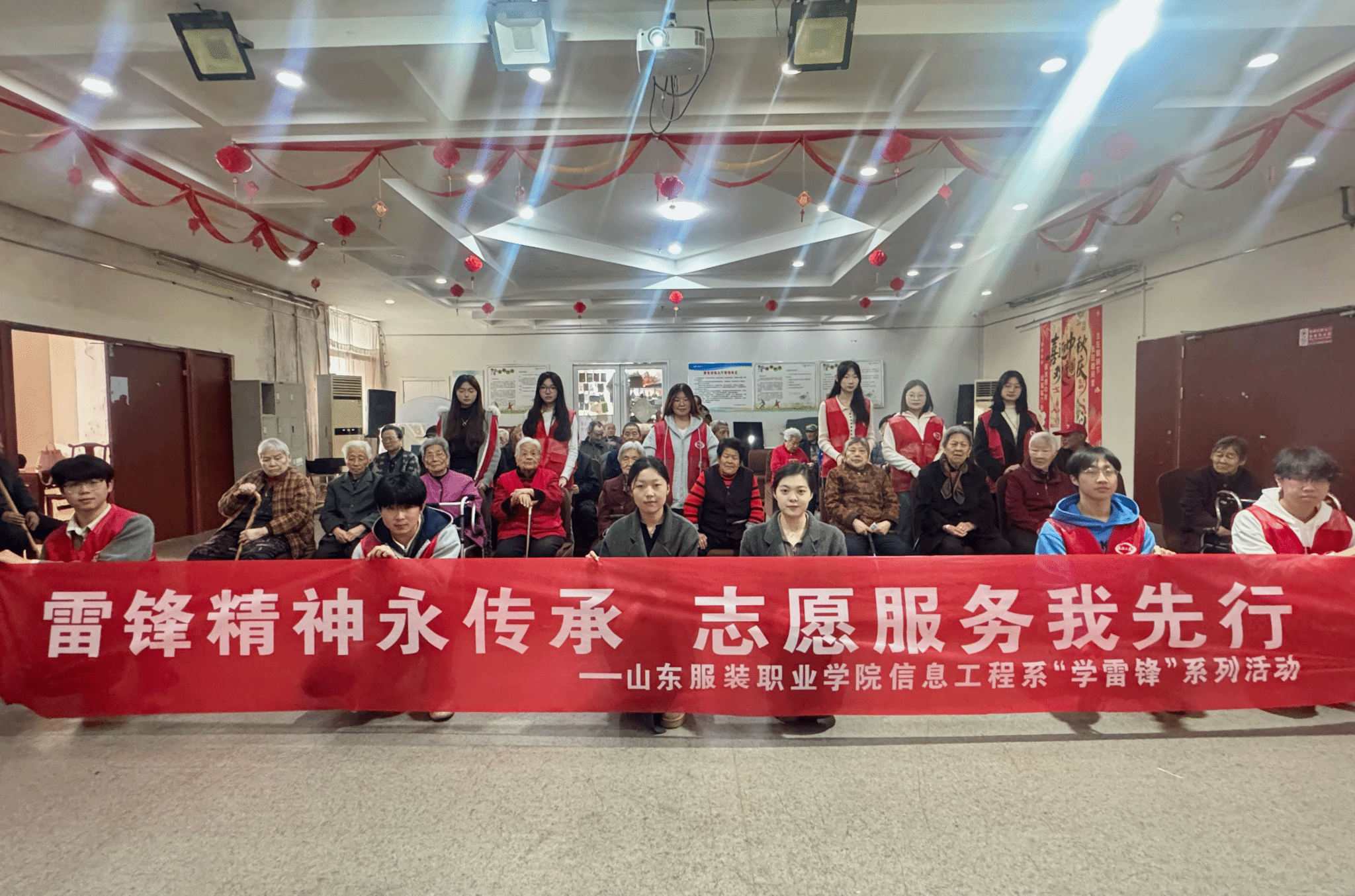 为弘扬雷锋精神,传承尊老敬老传统美德,3月13日,信息工程系组织学生志愿者走进泰安市德赡养老服务中心,开展以“青春暖夕阳,爱心传真情”为主题的志愿服务活动,用陪伴与欢笑为老人们送去温暖与关怀。