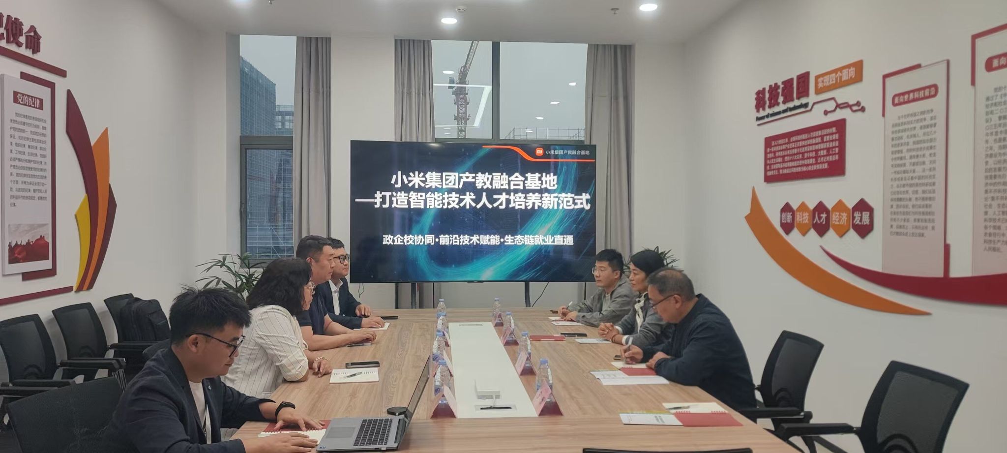 随后双方召开座谈会,雍德钰介绍基地产业资源与特色课程;齐俊补充了培训基地共建、实训基地共享合作等方面的意向。刘凌就校企合作模式、小米创新体验中心建设、相关费用等问题进行了咨询,明确了引入企业资源提升教学质量的实用性。