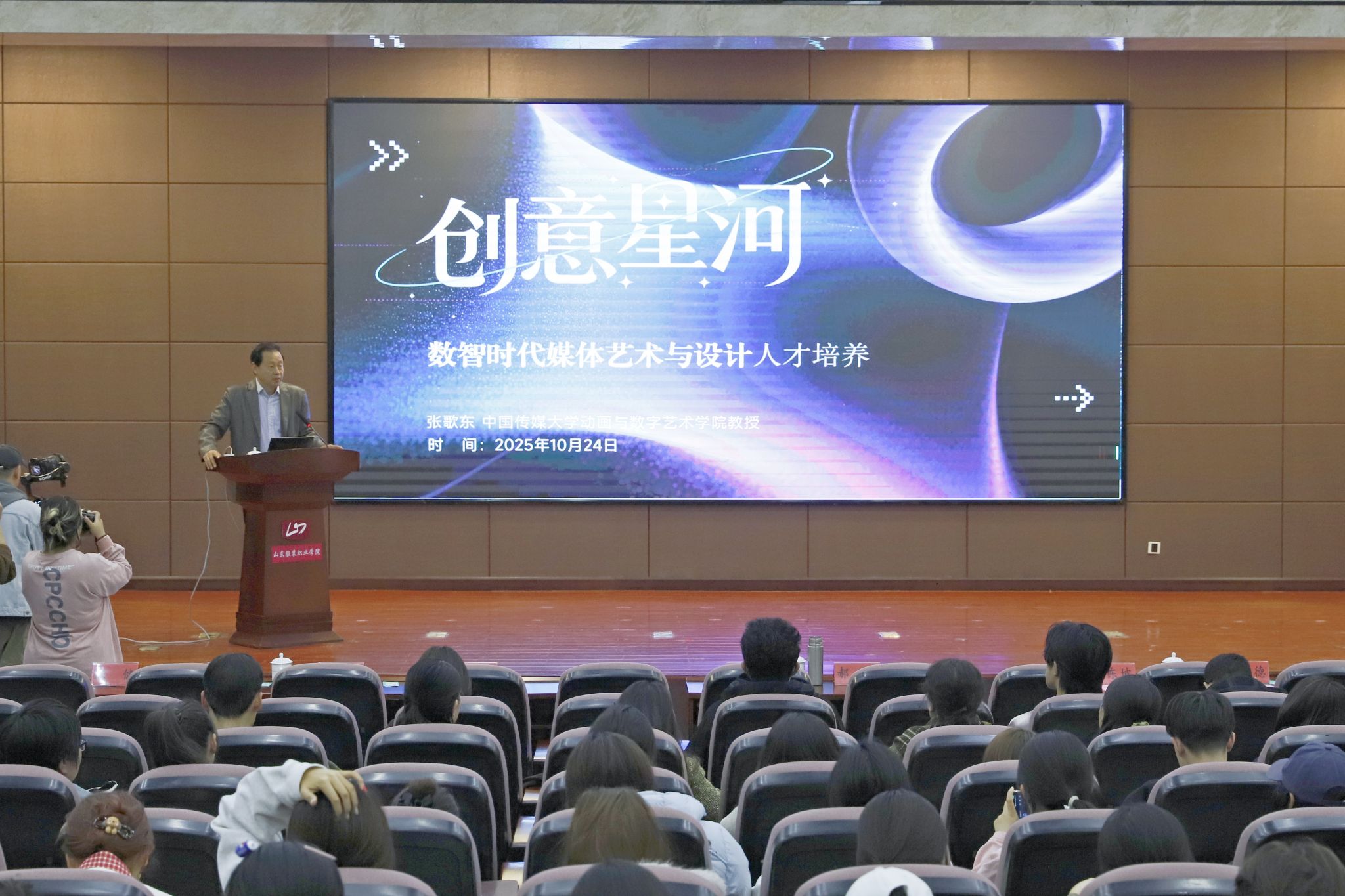 张歌东以《影视技术与数字艺术领域行业需求及未来发展》为题,为现场师生勾勒出了AI驱动的创意产业新图景,鼓励学生从“执行者”升级为“会提问、懂人文、能策展”的AI创意合伙人。
