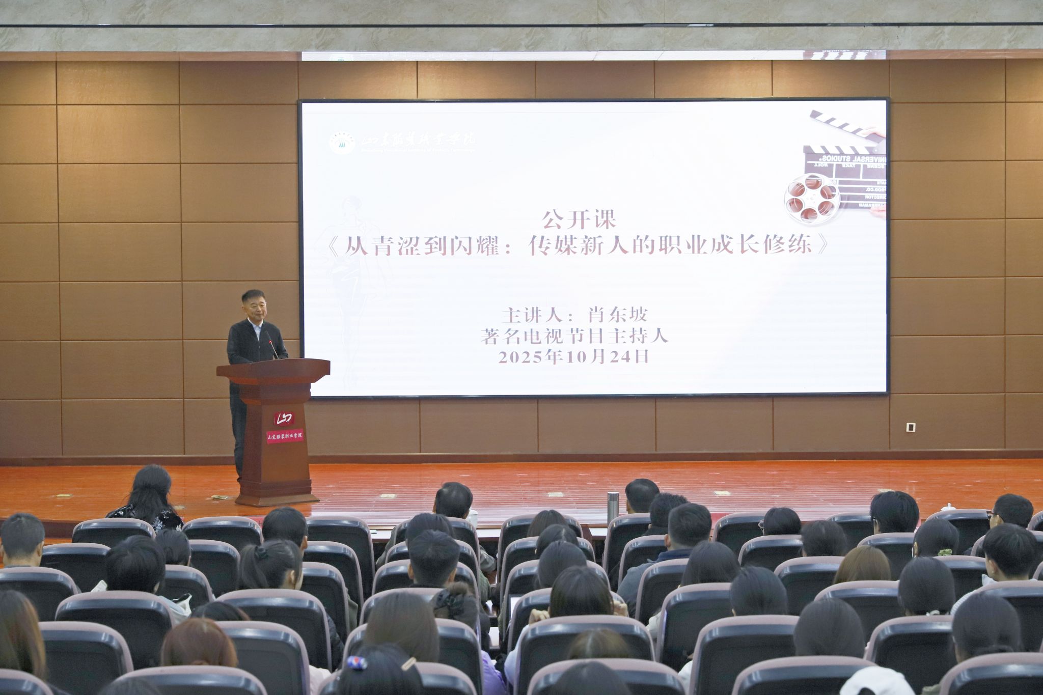 肖东坡以《从青涩到闪耀:传媒新人的职业成长修炼》为题,以亲切、幽默又充满智慧的风格,向大家分享了他在传媒行业工作的经验,为同学们提供了从大学进入传媒行业的宝贵意见。
