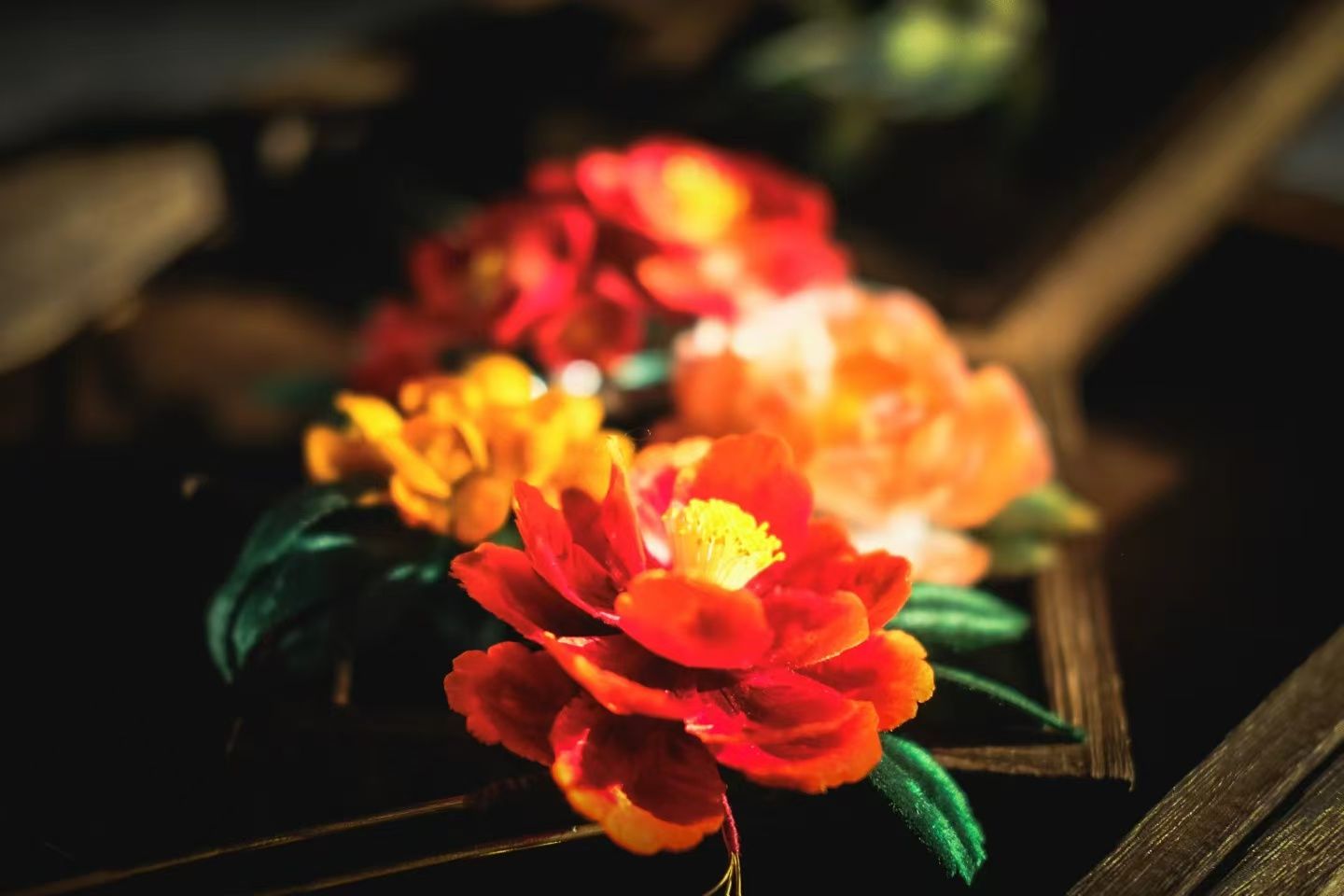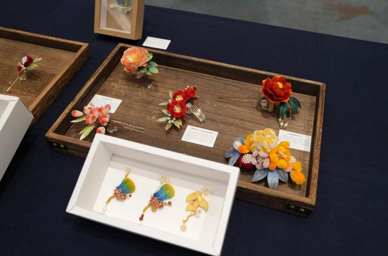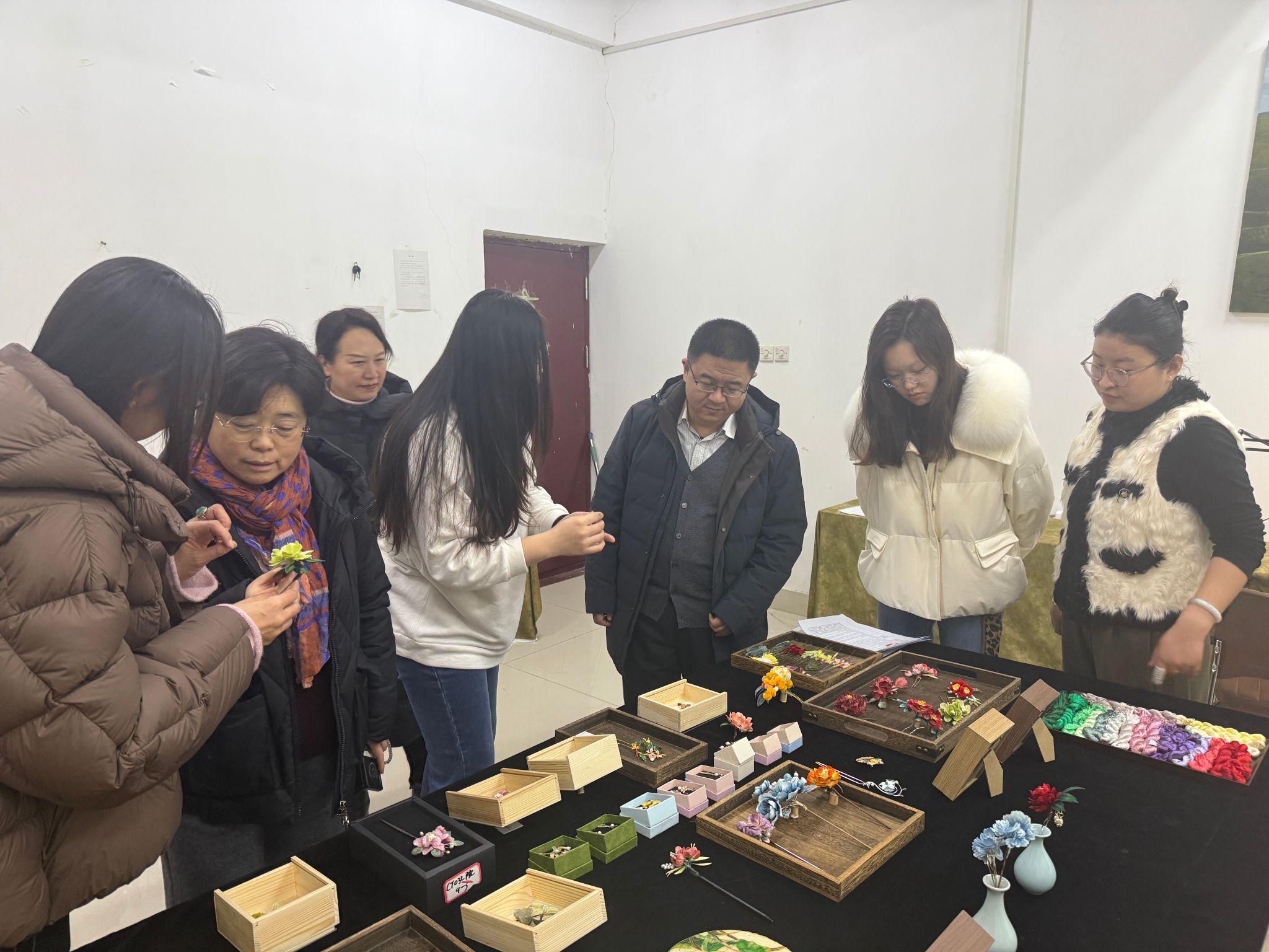 考察组深入工坊现场,工坊负责老师刘凤仪详细介绍了非遗绒花技艺的工艺制作流程、技艺特点及传承创新情况,并展示了工坊近年来创作的各类非遗手造作品,包括传统绒花、绒花与掐丝工艺融合的创新作品、融合泰山文化元素的文创绒花饰品及掐丝珐琅工艺品。这些作品不仅制作工艺精湛,更体现了传统文化与现代审美、地方特色的有机结合,受到考察组的一致好评。
