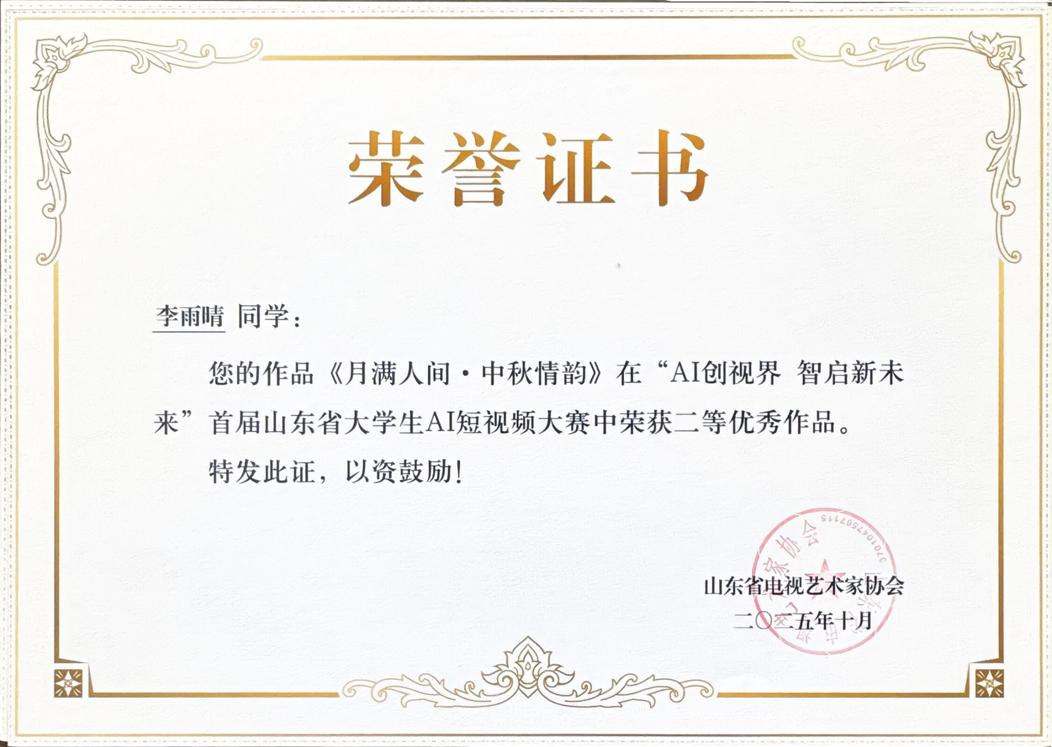 本次大赛由山东省电视艺术家协会主办,聚焦人工智能与视频创作的融合创新,吸引了全省近百所高校参与。我院学子在比赛中展现出的,不仅是扎实的专业功底与敏锐的科技洞察力,更是将课堂所学直接应用于产业前沿场景、解决真实创作需求的能力。他们的作品融合了艺术美感与技术创新,这正是学院将产业项目融入教学全过程的生动体现。