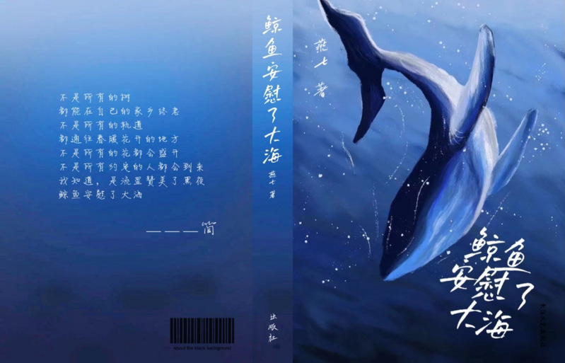 作品简介:设计灵感来源于书名,鲸鱼本就在大海里生长,当鲸落时,鲸鱼的身体慢慢坠入大海深处,为海洋里的生物提供营养,这至死不渝的浪漫是鲸鱼对大海最后的安慰。选这本书的原因是在我疲惫时,沮丧时,颓废时读这本书能治愈我的心灵,让我找回曾经有过的天真和初心,这本书是由一篇篇小诗集组合而成的,每一首小诗都能深深地触碰到我内心深处。老树的插画配着燕七的诗宁静中带着豁达,简单的说就是心中的桃花源,字里行间是心之向往的诗和远方。罗曼罗兰说过“世上只有一种英雄主义,就是在认清生活真相后依然热爱生活。”