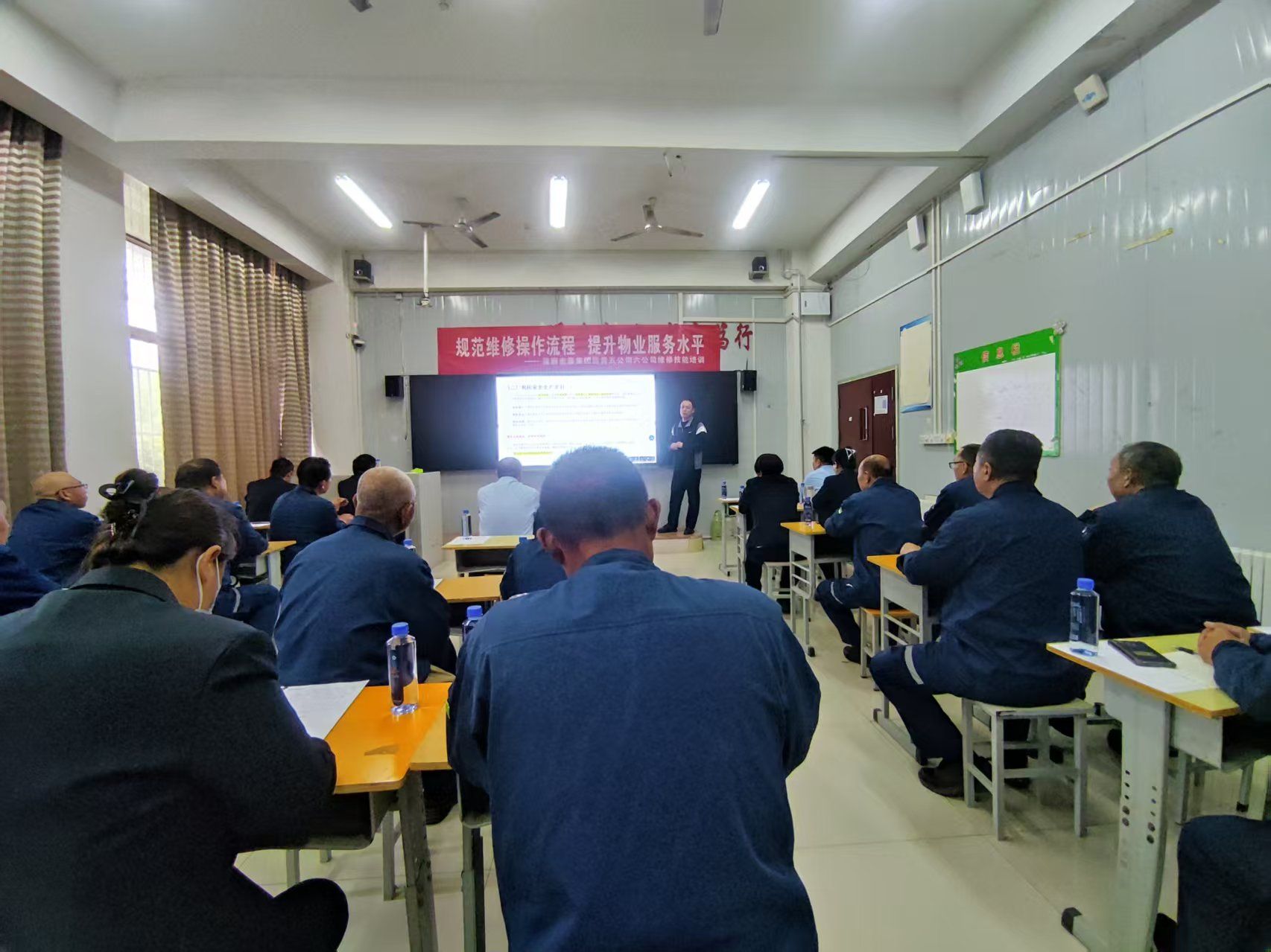 为进一步规范校园物业维修作业流程,强化维修人员专业技能与安全意识,全面提升校园物业服务质量,2026年4月16日,总务处联合保丽金康集团运营五公司、六公司,在学院内开展了以“规范维修操作流程,提升物业服务水平”为主题的维修技能专项培训。总务处相关负责人、保丽金康集团项目管理人员及一线维修骨干参与本次培训。